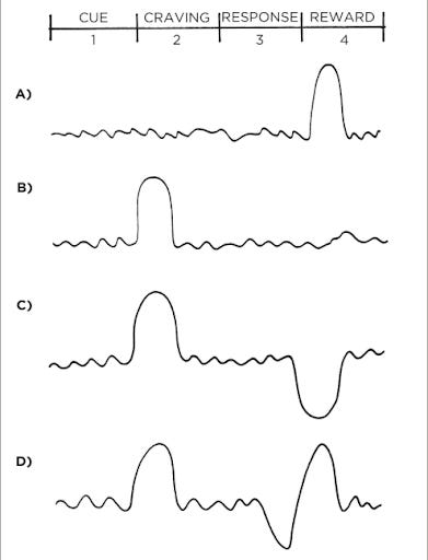 The process of building a habit can be divided into four steps: cue, craving, response, and reward.
