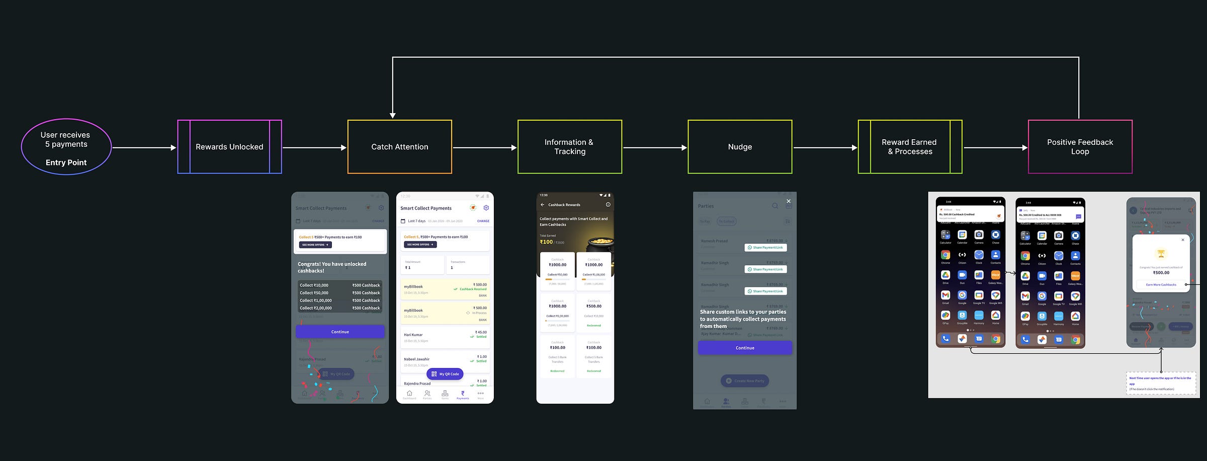 Using our support and sales teams we would call users from both the cohorts - experiment & control - and collect feedback regarding the product and introduce the concept of cashback (verbally & by sharing the pamphlet) to the users in the experiment cohort.
