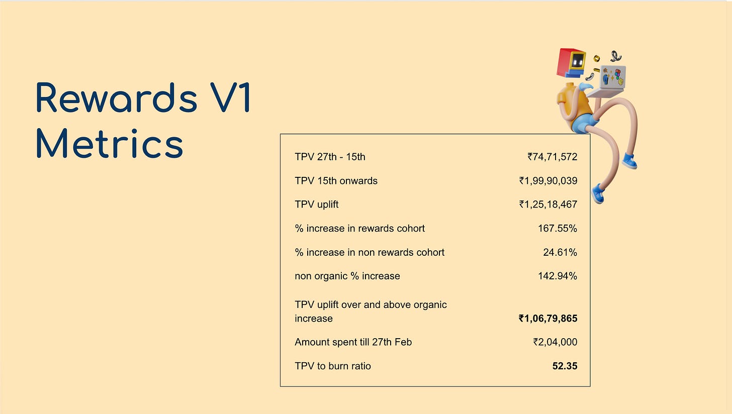 💡Note: Here for every 1 Rs spent on giving out rewards we got and additional Rs. 52 worth of transactions flowing through our platform